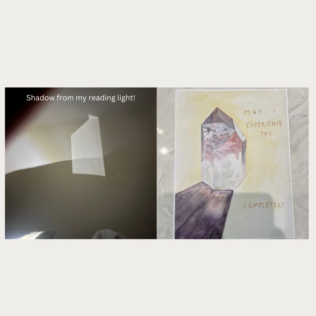 Lying in bed with my nerdy neck lamp, thinking and journaling about my time, I saw this strange shadow on my wall. It looked just like the shape on my abstract print.