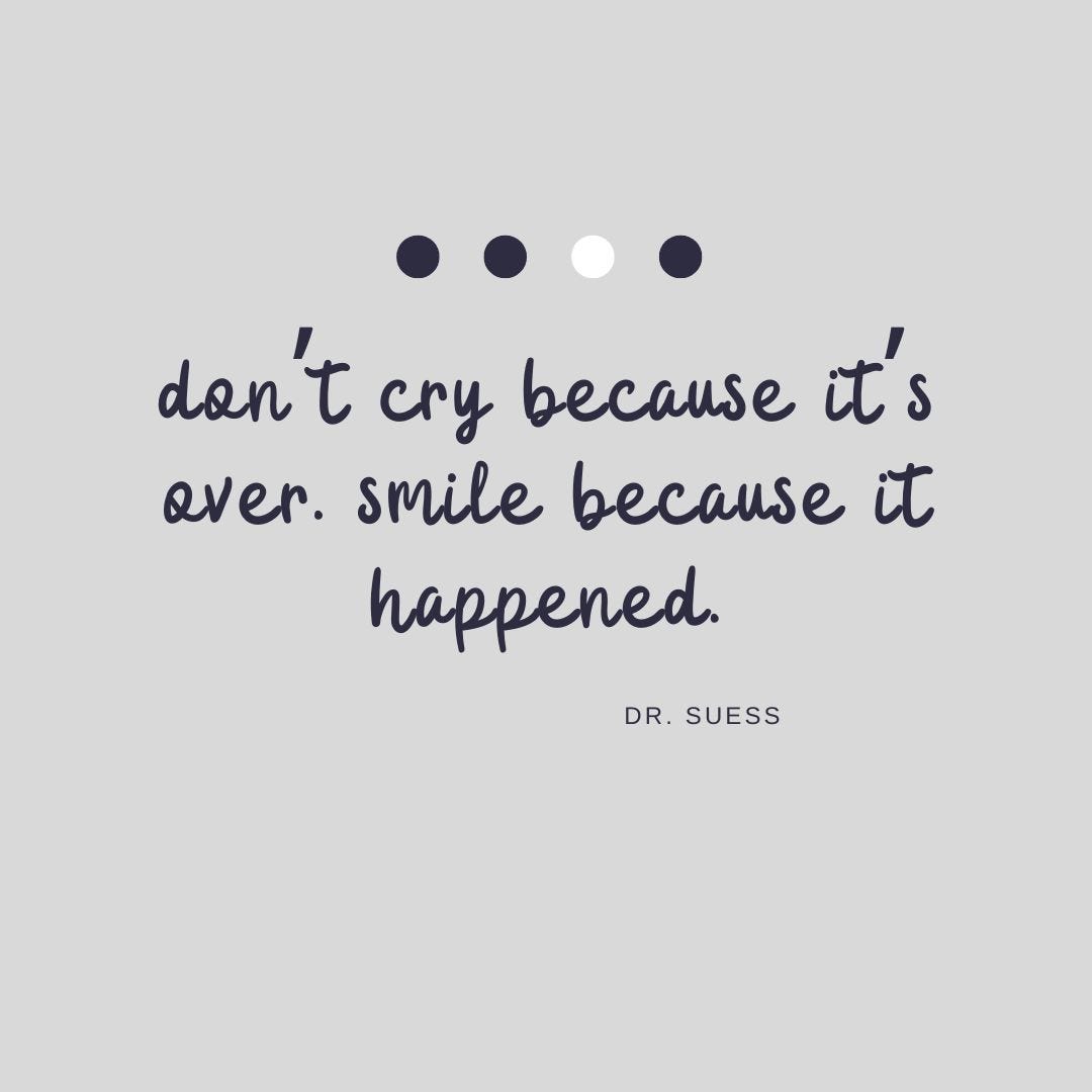 We lost in the semi-finals for the state championship. When we returned to the locker room, I wrote this quote on the whiteboard: “Don't cry because it's over. Smile because it happened.”— Dr. Suess.